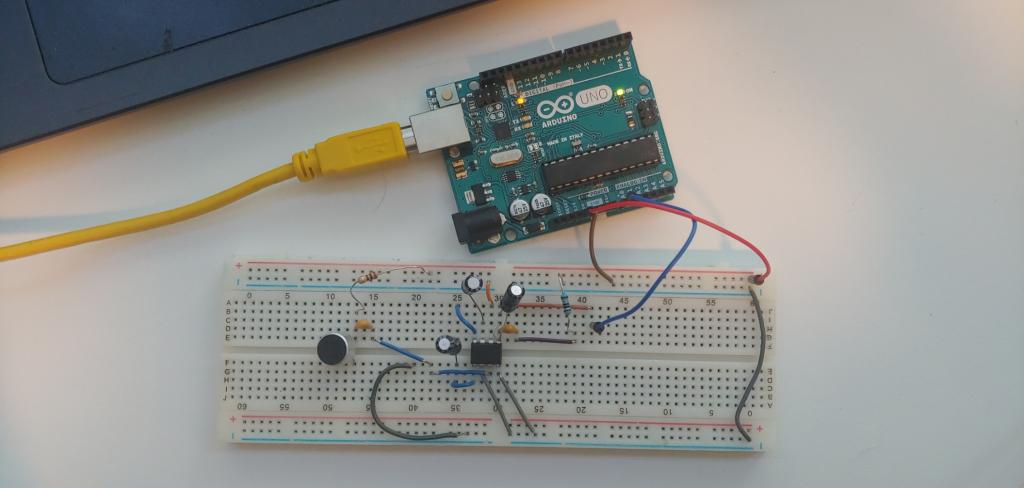 Once we are ready with our circuit we can connect the Arduino to computer and upload the “Analog Read Serial” Example program from Arduino to check if we are getting valid ADC values from our microphone. Now we have to convert this ADC values to dB.