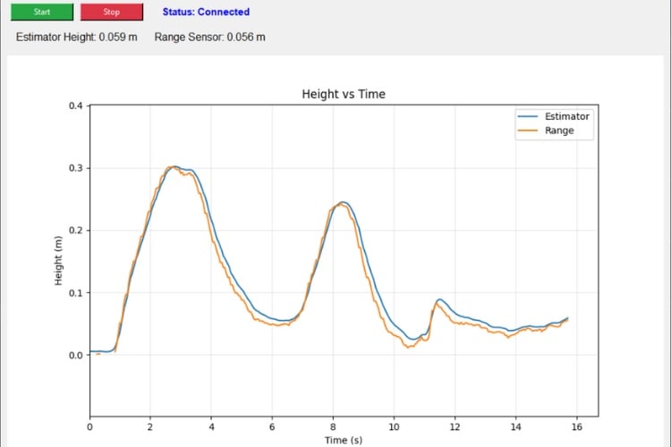 To make ESP32 drone height measurement easier to work with in practice, we use a standalone test script called test_height_sensor.py. This script connects to the LiteWing and displays both height variables in a simple GUI with real-time plotting for comprehensive height test validation. You can get the script on our LiteWing GitHub repository under LiteWing/Python-Scripts/Flight_Positioning_Module/