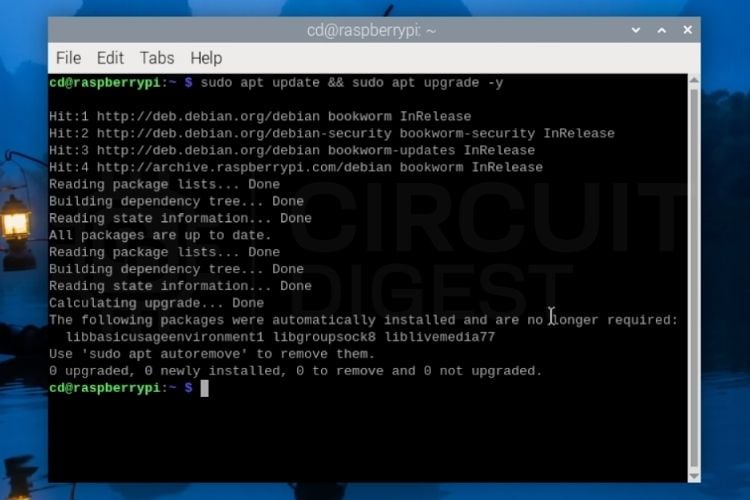 This will fetch the latest package lists and upgrade all installed software to the newest available versions, a step that helps avoid compatibility issues during the setup.