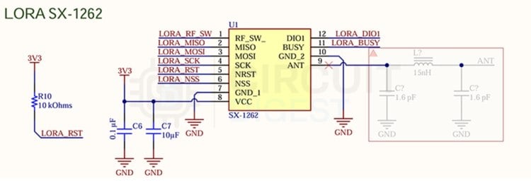 For long-range communication in your off-grid mesh network, I chose the Wio SX1262 module from Seeed Studio. Designing a raw RF section with impedance matching and antenna tuning for Meshtastic LoRa devices would have taken significant time and equipment, but the Wio module integrates all of that into a pre-certified package. This saved me headaches while still delivering excellent LoRa performance for the Meshtastic mesh network. I placed standard decoupling capacitors (0.1 µF and 10 µF) on its supply rails and pulled its reset pin up with a 10 kΩ resistor. Out of curiosity and for future flexibility in your Meshtastic node with ESP32-S3, I added an optional PI-filter antenna network in the schematic. It wasn't populated in this version of the PCB, but if tuning is needed later for your DIY Meshtastic node, the pads are already there. This way, I future-proofed the design without overcomplicating the first build.